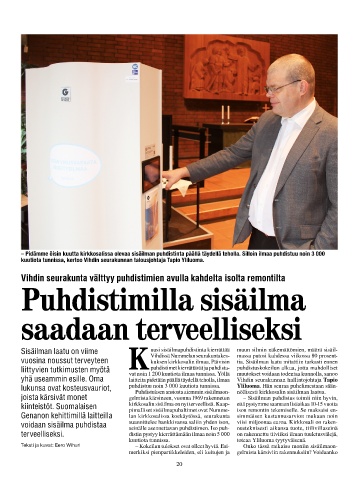 Teksti ja kuvat: Eero Wihuri –!Kokeilun tulokset ovat olleet hyviä. Esi- Onko tässä ratkaisu moniin sisäilmaon-